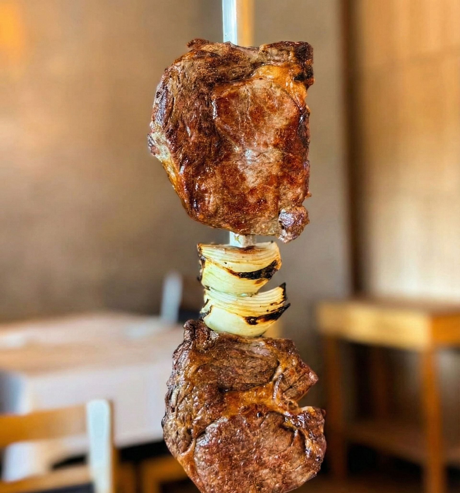 Espetos Comuns: Picanha Argentina, Contrafilé Argentino, Ancho Argentino ou Meca na Brasa.